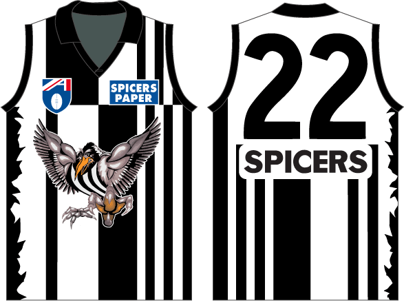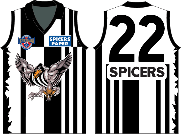 Swooping Magpie, which became a Clash jumper in later years, but with different sponsors