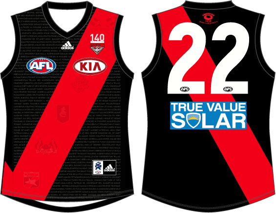 Celebrating 140 Years. Jumper featured all known official club logos on the sash, and the earliest logo above the numbers.