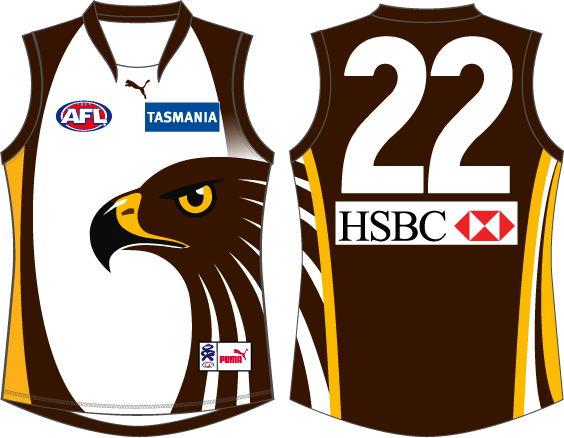 Mostly Brown Away jumper with heritage HFC logo on the back. Worn in Melbourne in Away games