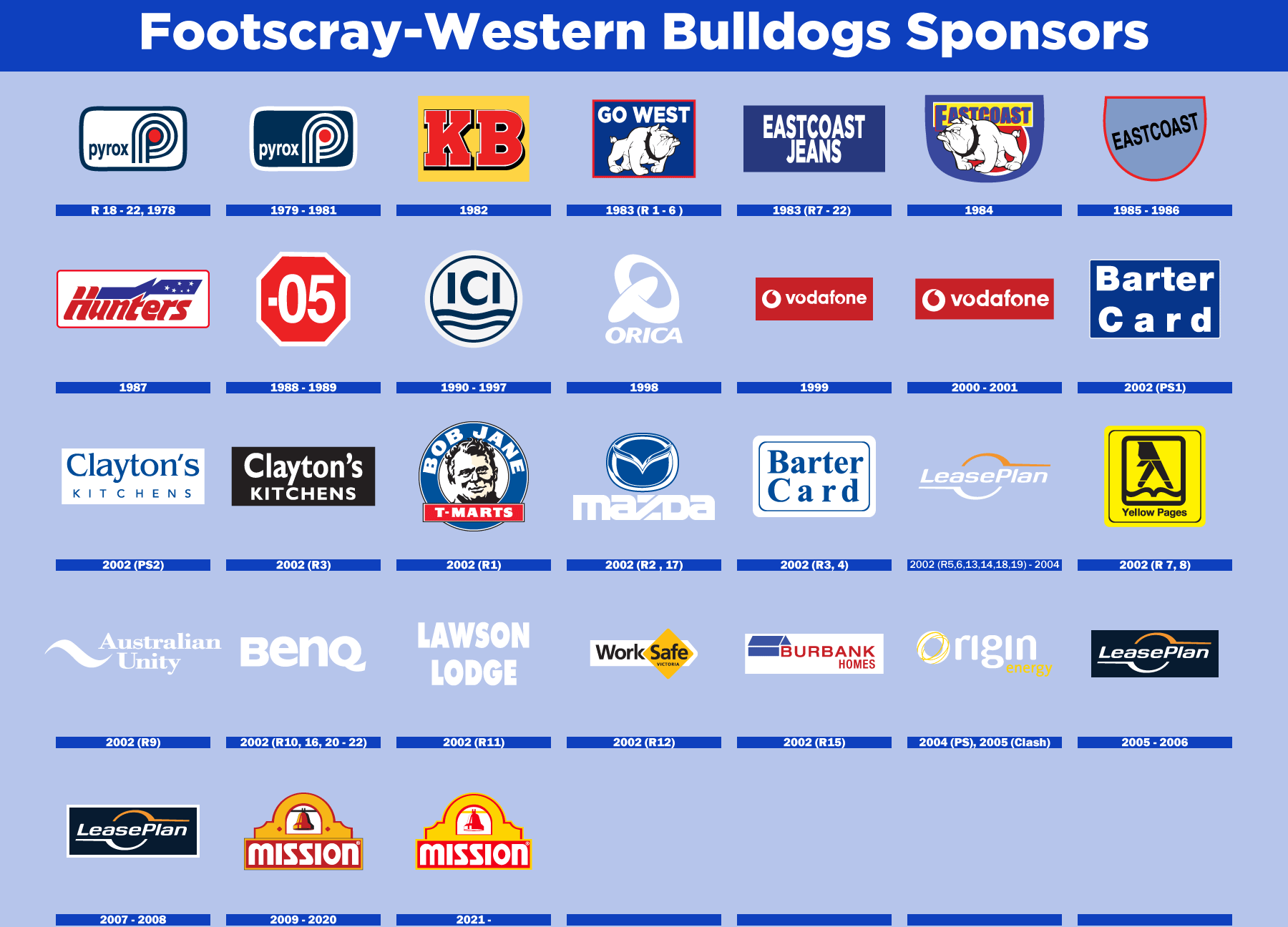 In 2002 the Bulldogs had ten different sponsors |